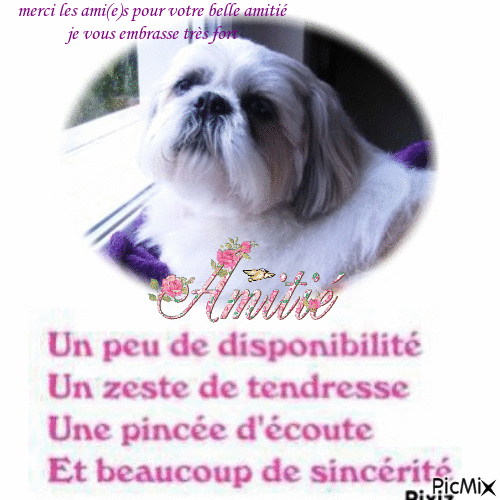 Cela fait trois semaines aujourd'hui que j'ai perdu mon petit coeur, il était tout pour moi, ma raison de vivre. C'est pour lui que je continuais à me battre. Il m'a apporté tellement de bonheur. Aujourd'hui, il me manque terriblement, j'aimerai tellement qu'il soit encore avec moi et en bonne santé. j'aimerai tellement le prendre dans mes bras, l'embrasser, sentir son odeur. C'était un chien de refuge, il a vécu des moments pas facile dans les 4 premières années de sa vie avant que je ne l'adopte. Je ne sais pas comment je vais faire pour vivre sans lui, j'essaie mais je n'y arrive pas. Je n'ai plus gout à rien, je suis en dépression et je n'ai qu'une envie c'est de le rejoindre. Il était mon trésor, mon petit ange, il était ce que j'avais de plus cher dans ma vie. Maintenant je n'ai plus rien, ni personne, j'ai tout perdu. Je vais arrêter là car sinon je pourrais parler des heures de lui. Il me manque, et où qu'il soit je l'aime plus que tout et à l'infini, et j'espère que l'on se retrouvera.
